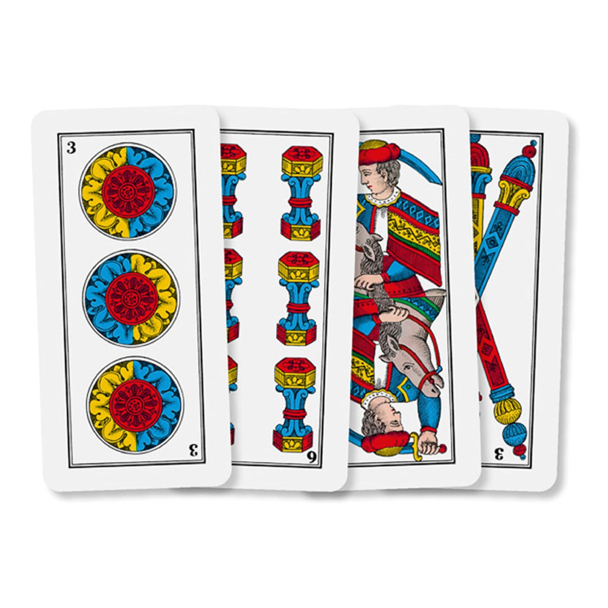- CONTENUTO DELLA CONFEZIONE: Mazzo di 40 carte in cartoncino. Tutte le carte sono robuste, adatte all’uso intenso e continuo. Con il mazzo viene fornito anche un astuccio porta carte. Dimensioni della carte: 51x103 mm