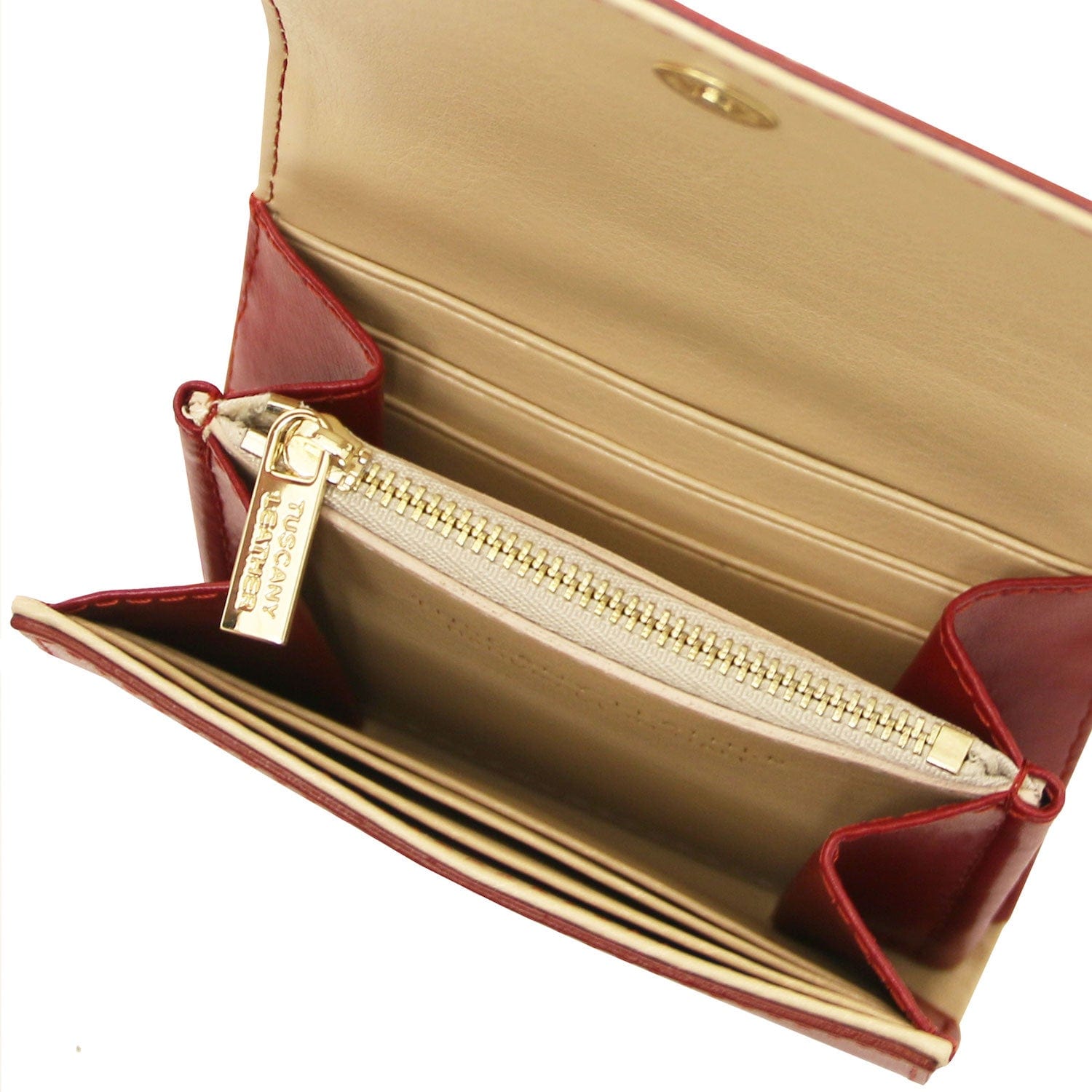 - Outside part: Hot-stamped in gold with the Tuscany Leather logo