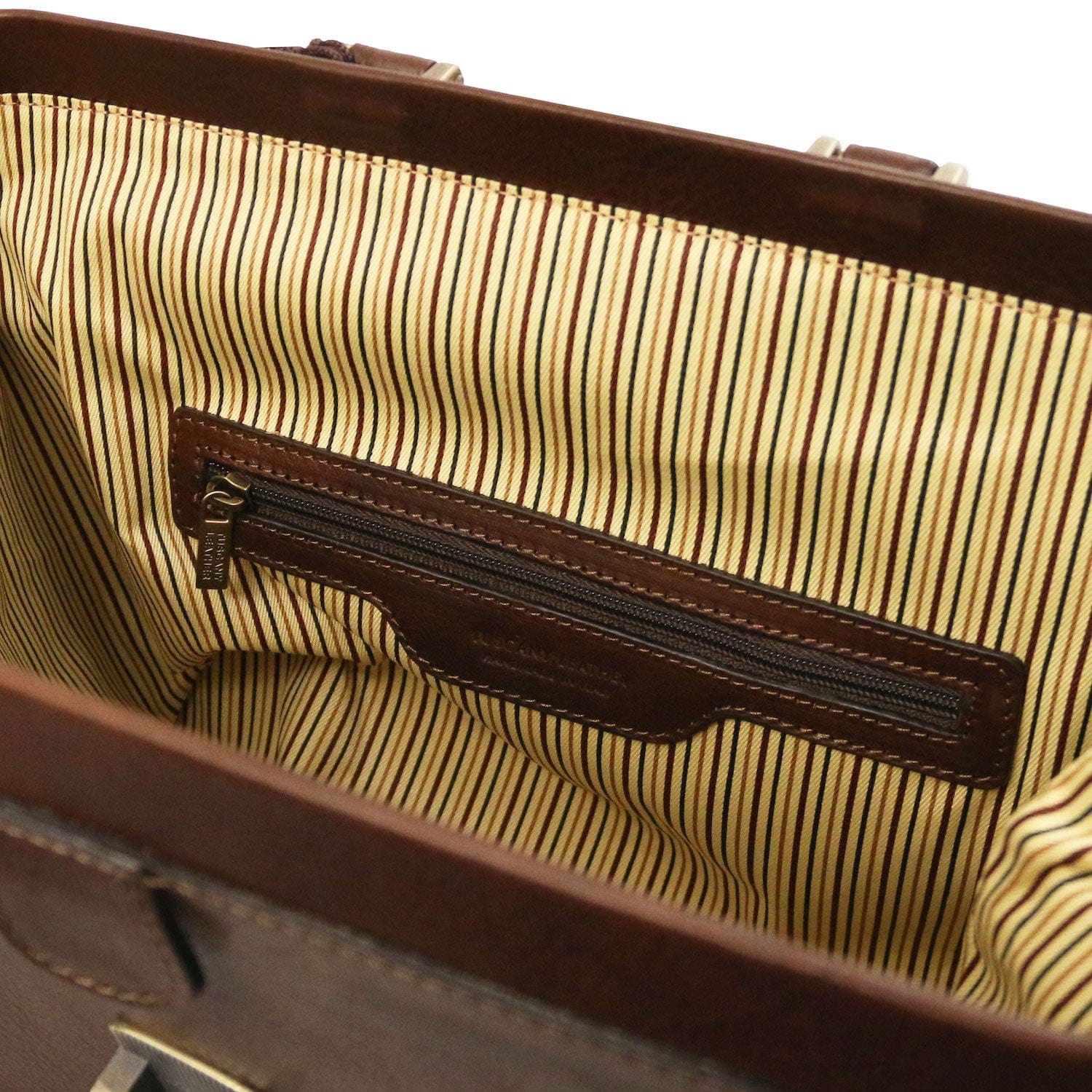 - Closure: Metal push-lock clasp with key and engraved Tuscany Leather logo