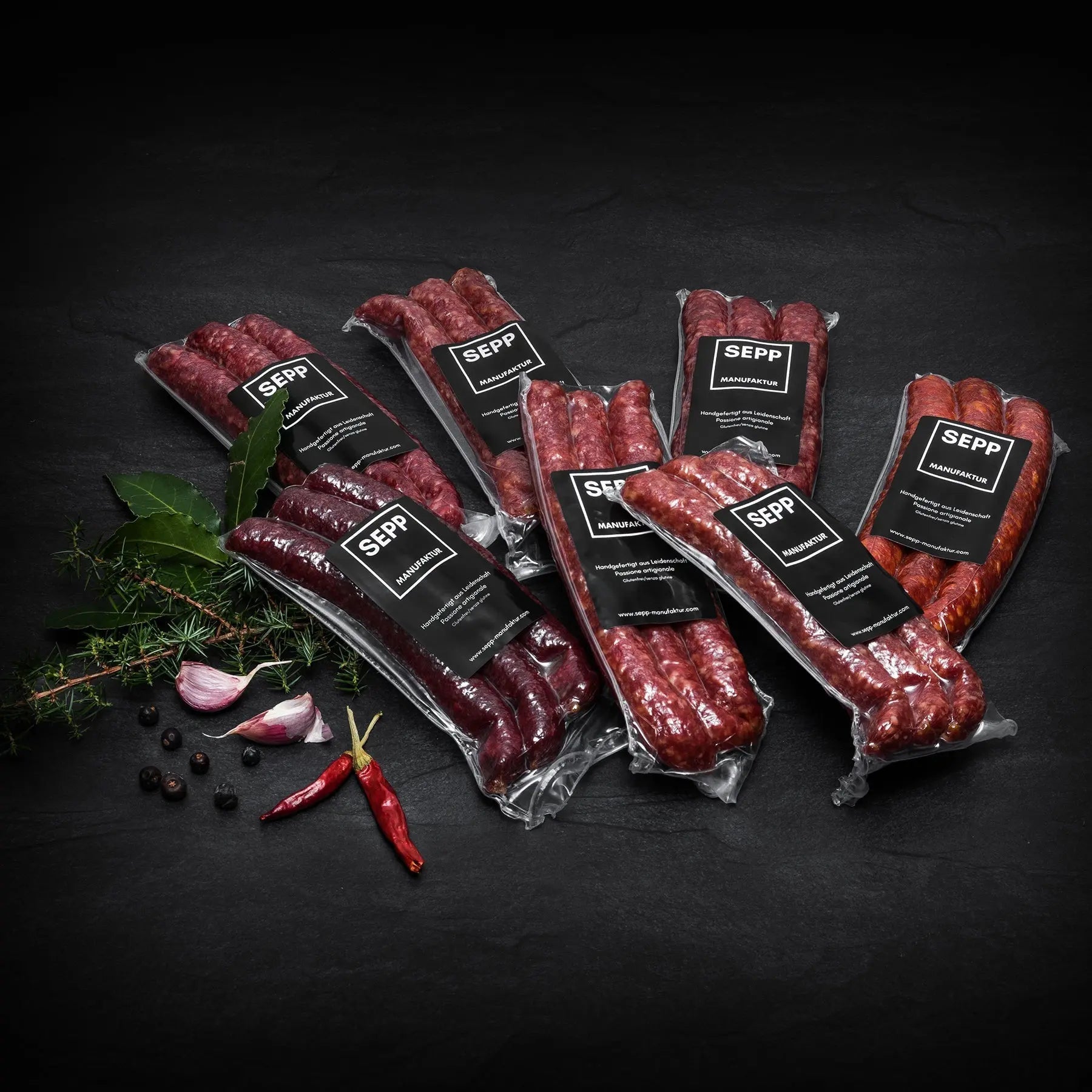 Die perfekte SEPP-Manufaktur Degustation Kaminwurzen bestehend aus: