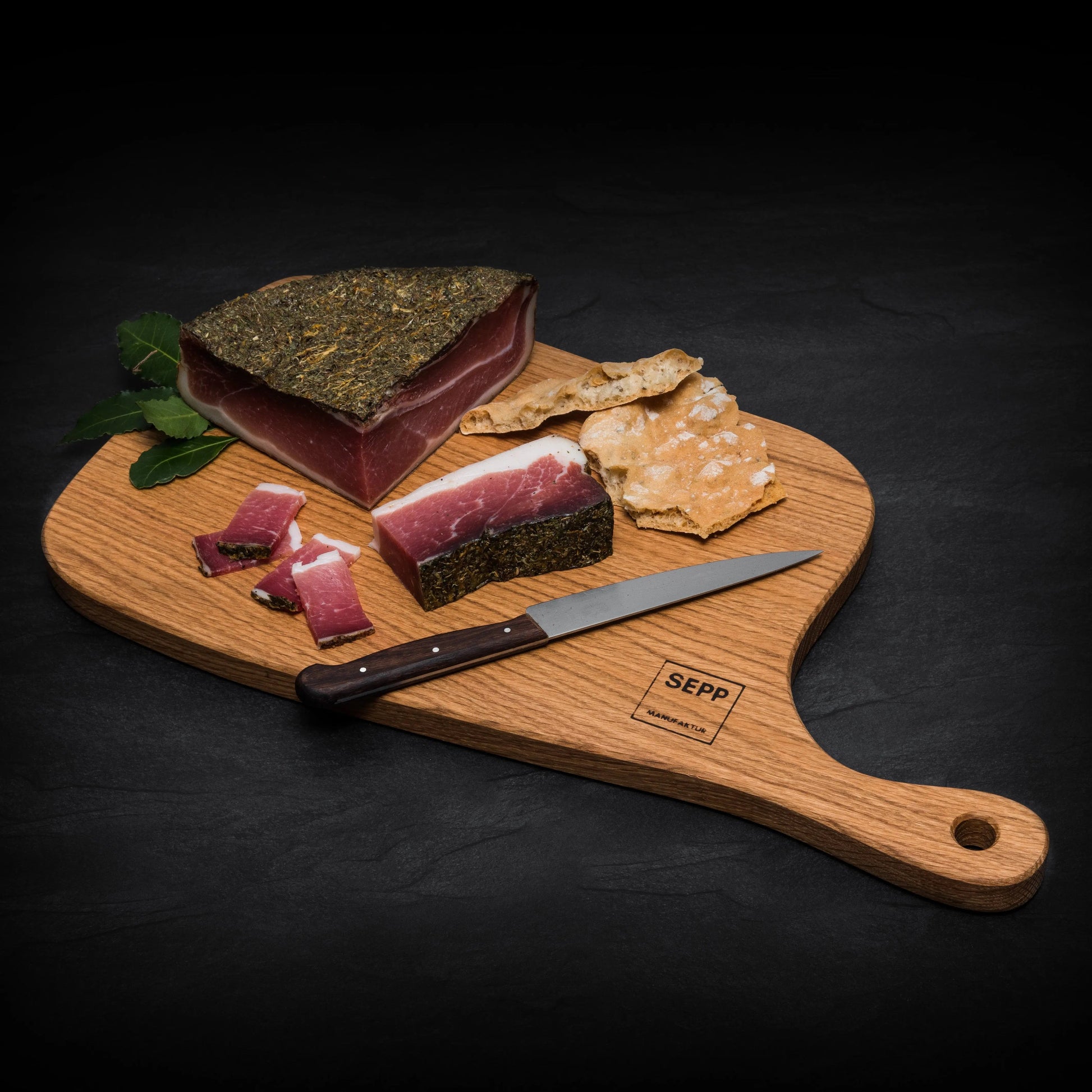 Ich bin dein SEPP-Manufaktur Speckbrettl in Eiche-Massivholz!