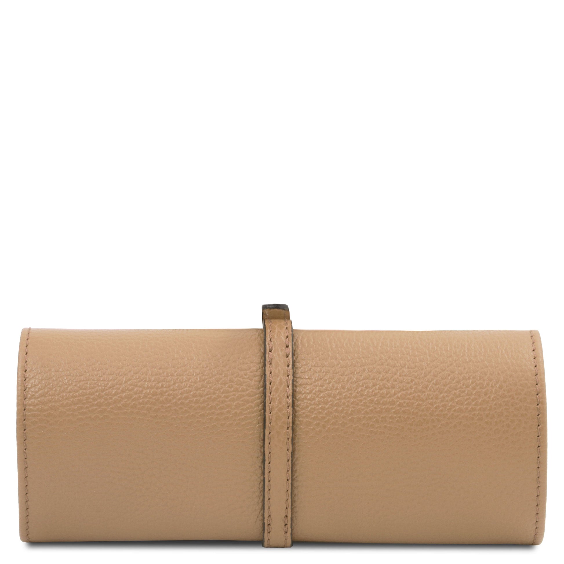 Keep your jewelry safe and well-organized with our luxurious leather jewellery case. Crafted from premium Italian pebbled leather and adorned with golden hardware, this stylish case is both elegant and functional. The soft interior features multiple pockets to ensure your jewelry remains tangle-free and unscratched, making it perfect for both home storage and travel.
