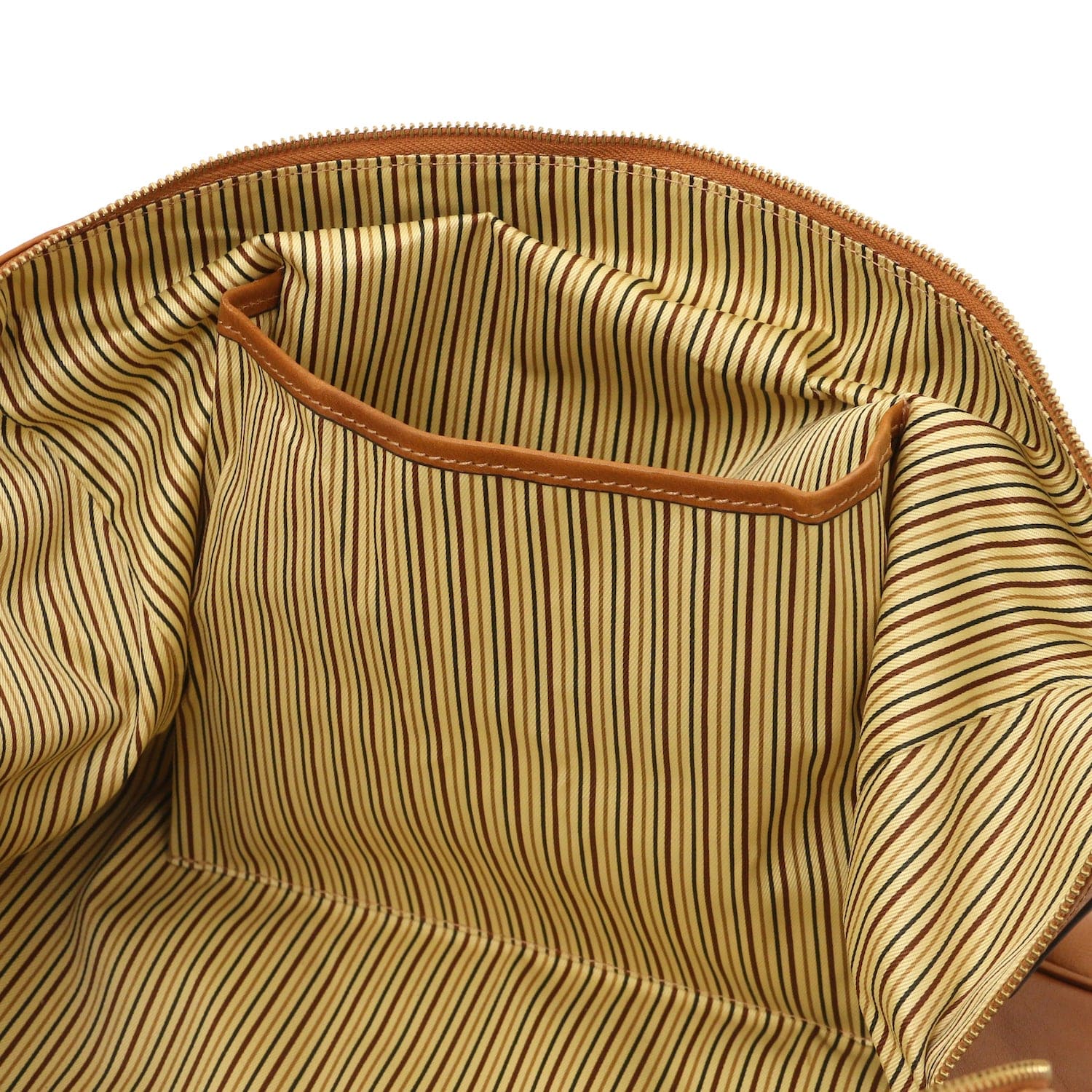 TL Voyager - Travel leather duffle bag with pocket on the back side in matte leather - Small size | TL141250